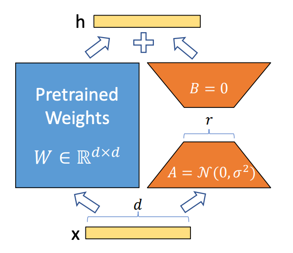 LoRA는 LLM 파인튜닝 기법 중 하나로, 기존 행렬의 가중치를 동결하고 추가로 학습할 때 증분( 가중치 행렬에 더해지는 작은 변화량 Δ𝑊 여기서는 A와 B)만을 따로 학습하면서, 이 증분 행렬을 두 개의 저차원 행렬 곱으로 표현하여 전체 모델의 용량을 줄이는 방법이다.